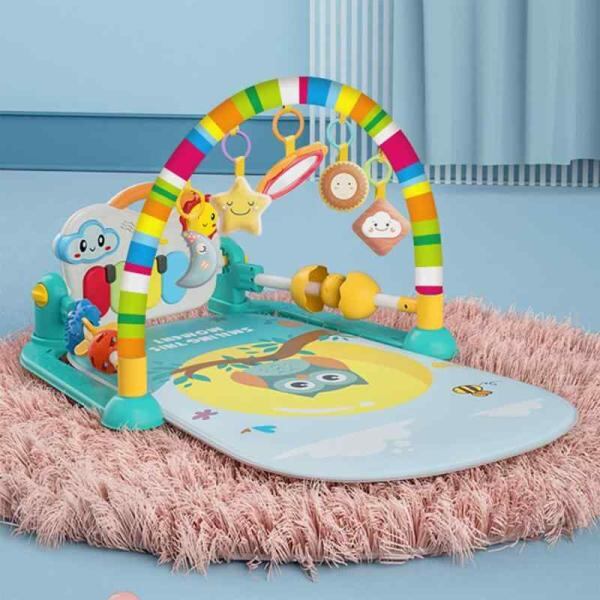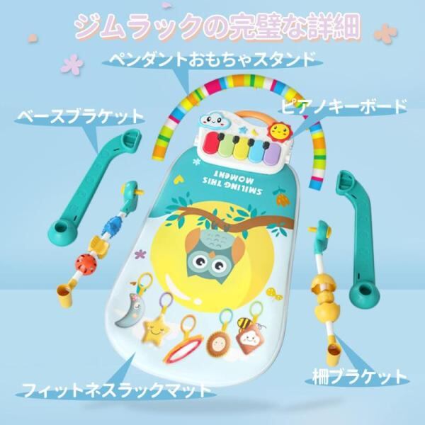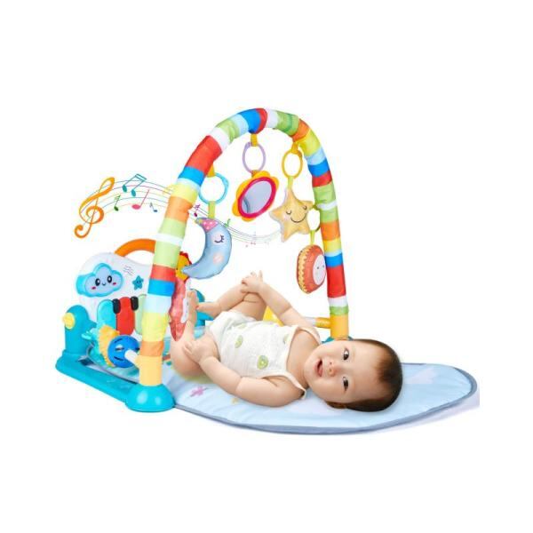 ?【赤ちゃん用プレイマット】:ベビージムはアーチとおもちゃは取り外しができて、5つのおもちゃ仕掛けでお子様の成長を促すいろいろな遊び方ができます。赤ちゃんが足でピアノを蹴ると音がして運動機能が向上します、優しくてゆっくりとした音楽を流して、赤ちゃんのために楽しい成長雰囲気を作り出します。