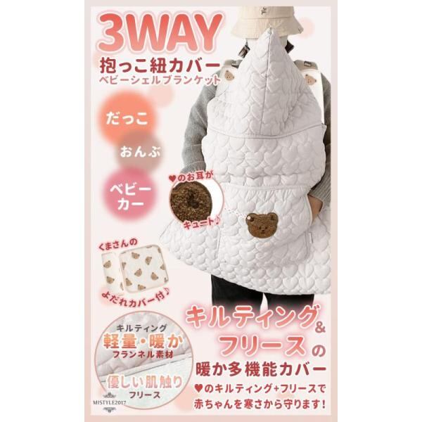 ?? 《3WAY仕様》 抱っこ紐につけてだっこ&おんぶ、ベビーカーにもつけられる 3WAY仕様なのでお出かけのシーンに合わせて幅広くお使いいただけます。 幅が広いので、ベビーカーにつけてブランケットとしても使用可サイドまでしっかりカバーできるから特に寒い日でも安心してお使いいただけます。冬のお出かけのおともにどうぞ