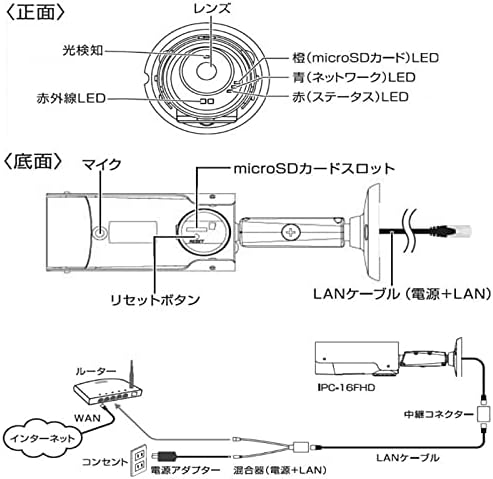 屋外用 防水防塵保護等級IP66 200万画素+広角レンズ カメラ周辺の明るさを感知し、自動で昼間・夜間モードが切り替わります。 動体検知/アラーム・お知らせ機能 microSDカードやNASに繰り返し、録画・再生ができます。録画映像はタブレット、スマホやWindowsパソコンから遠隔操作で視聴できます。 スケジュール録画機能 再生画面の分割表示機能 REMIXのみが専売する 正規品 外装箱(スリーブ)無しタイプ
