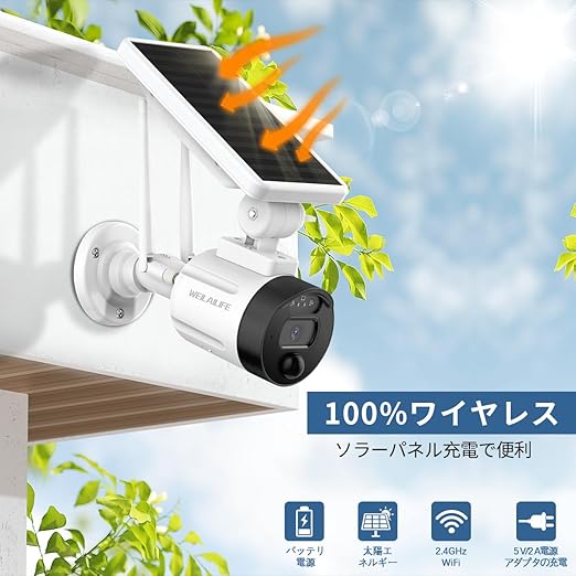 {超大容量 & ソーラーパネル充電}本商品は大容量バッテリーなので通常の商品より長時間録画でき、頻繁に充電する必要がなくて便利です。本商品はソーラーパネルがついているので、ソーラーパネルを通じてカメラに充電するから自分で充電する面倒くさいなことはありません。太陽光給電で省エネもできますし、急にバッテリーが切れて録画が中断される心配はありせん。また、USBで充電も可能ですので、状況によって充電方法を選択することができます。